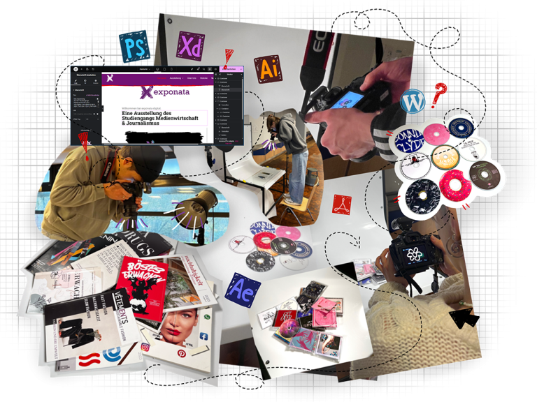 Auf dem Weg zur finalen Version der begleitenden Website musste unser Team zahlreiche Aufgaben bewältigen und Herausforderungen überwinden. Dazu gehörten unter anderem das Fotografieren einzelner Projekte aus dem Print-Bereich, die Bildbearbeitung aller ausgewählten Projekte für die Website sowie die gestalterische Neuausrichtung des diesjährigen Logos der Exponata. Darüber hinaus verfassten wir die Texte für die Website und entwickelten passende Social-Media-Posts für Instagram. Das Hauptaugenmerk lag jedoch auf dem Webdesign und der vollständigen Umsetzung der Website mittels WordPress von Grund auf, also der generellen Design-Idee, dem Layout und schließlich der Integration der vielfältigen Inhalte. Dazu gehört naturgemäß auch immer wieder Ausprobieren, Verwerfen, für Gut befinden und Fehlersuche, bis es dann endlich fertig ist.